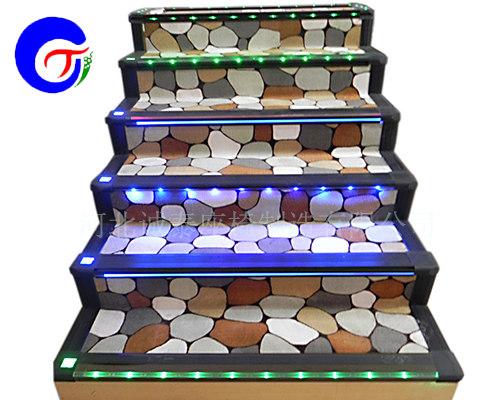 3、貼PVC地革的時(shí)候要超過小臺(tái)階至少一公分,這樣在安裝臺(tái)階燈的時(shí)候在保證高低壓條安裝的直線性的同時(shí)壓住pvc邊緣。
