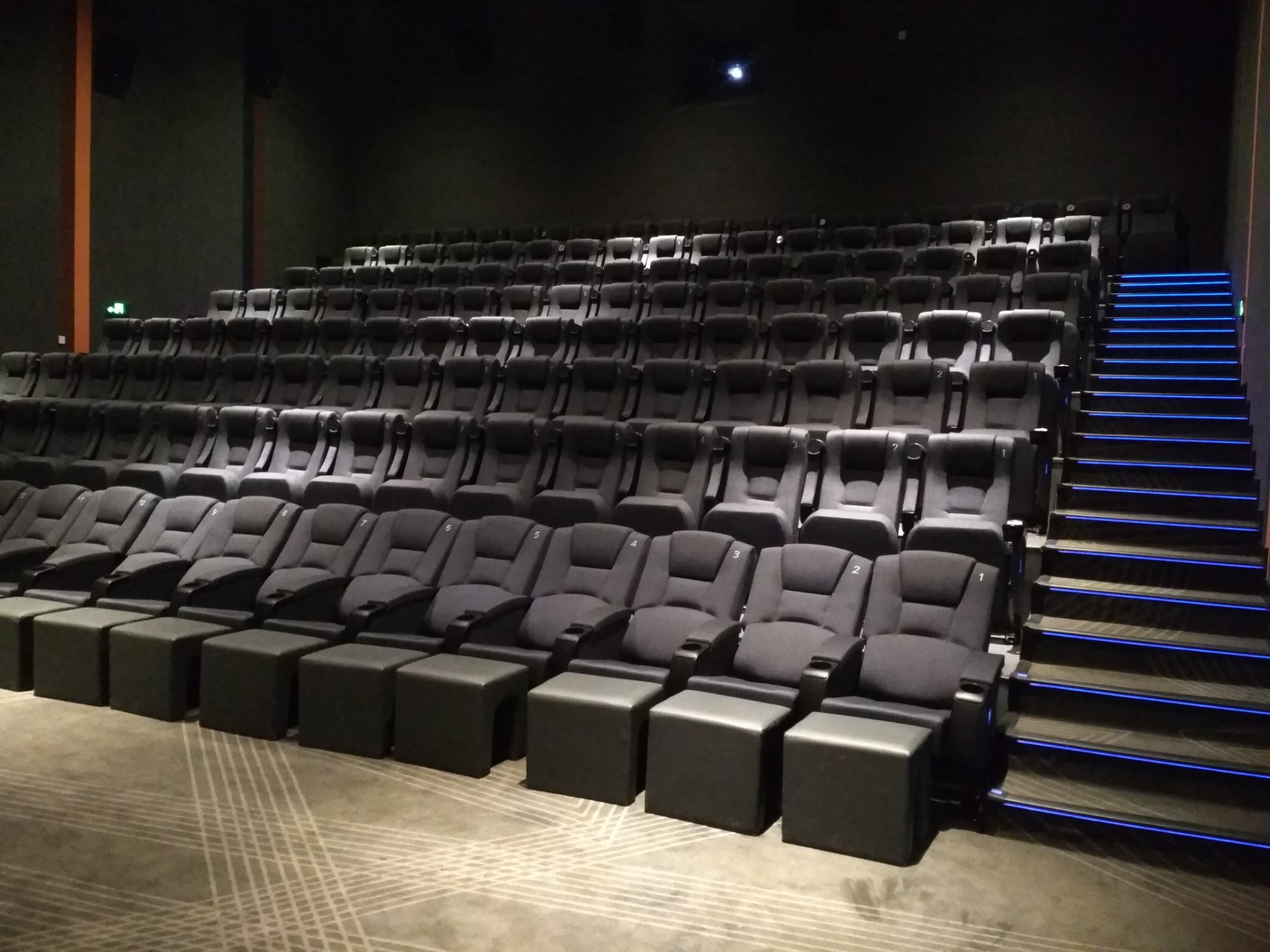 大多數電影院安裝臺階燈時會選擇安裝低功率LED燈帶,LED燈帶具有體積小、安裝靈活、節能環保的特點。能夠對臺階進行充分照明,保證觀眾上下行走***;其次,低功率也不會影響電影院內整體觀影氛圍。